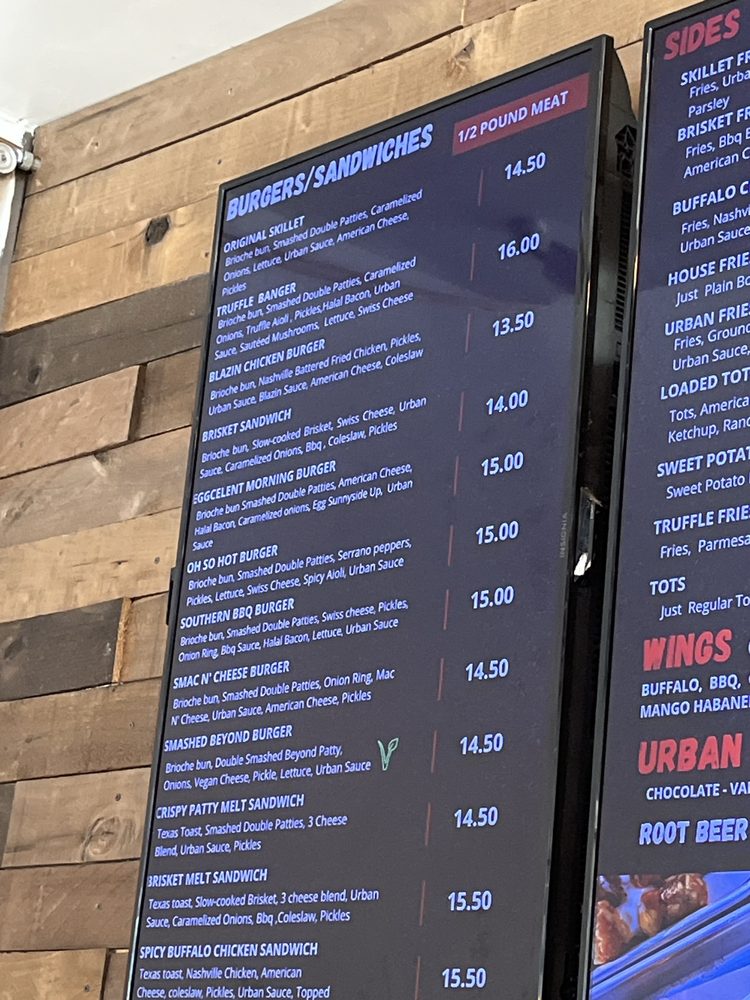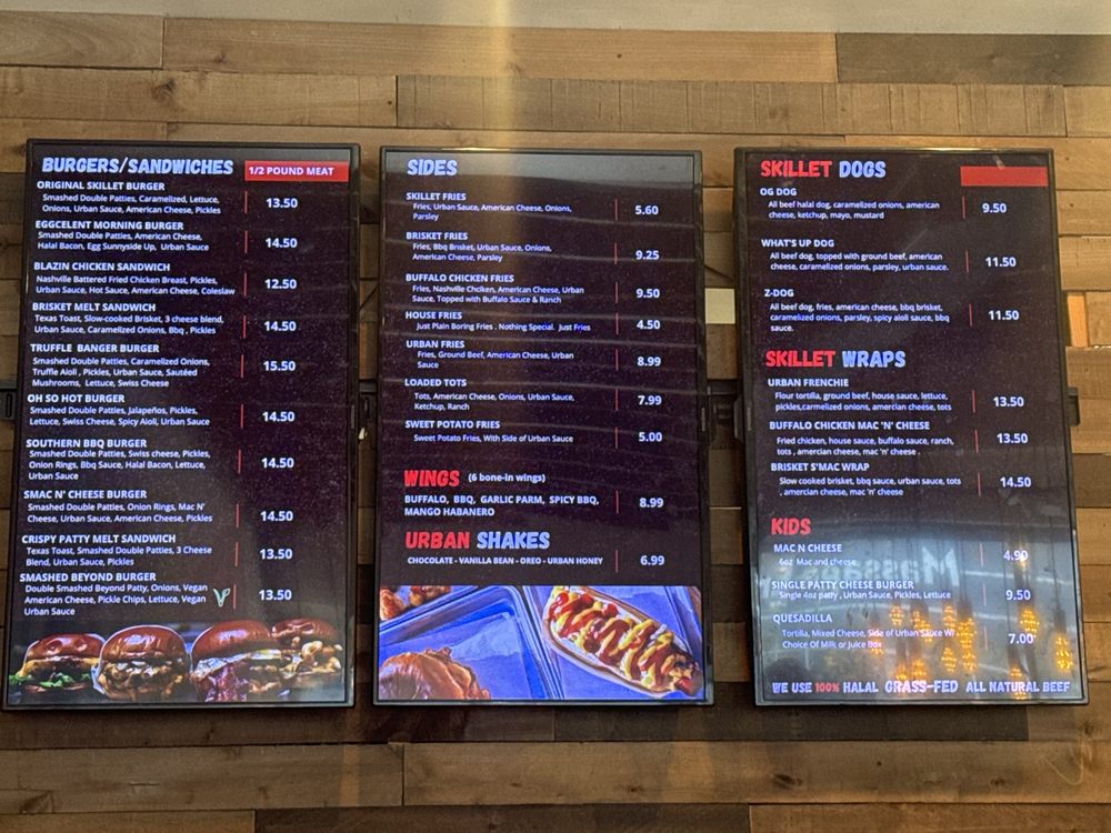 Urban Skillet is a trendy, hipster burger joint located in NoHo, Los Angeles. It offers a variety of options, including vegan and limited vegetarian choices. Customers rave about the flavorful halal patties, crispy fries, and delicious burgers. The brisket melt, cheese fries with sautéed onions, and truffle cheeseburger are standout favorites. While some find the prices on the higher side, many agree that the quality of the food justifies the cost. The atmosphere is relaxed, and the service is top-notch, making it a must-visit spot for burger lovers. Don't miss out on the Oh So Hot Burger and the Southern BBQ burger, both packed with flavor and fresh ingredients. Look out for their specials, like free fries with a Yelp check-in. Urban Skillet sure knows how to satisfy your burger cravings with their tasty offerings.